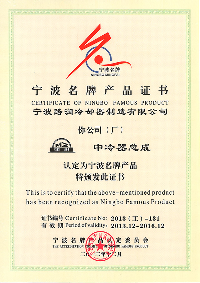 寧波名牌產(chǎn)品證書